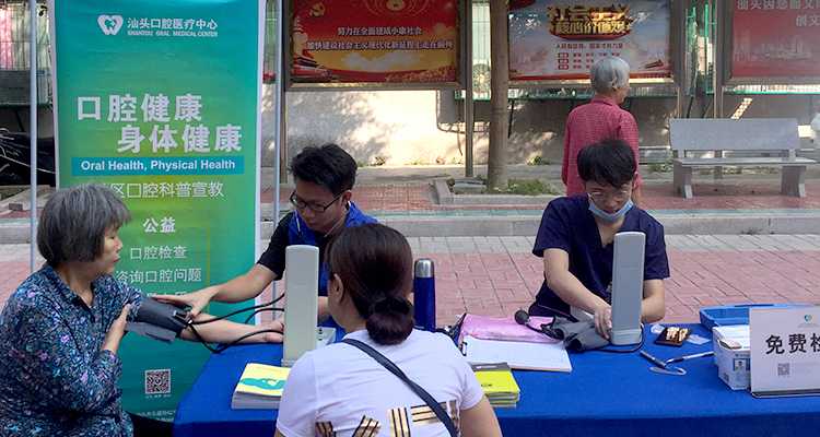 10月24日上午10點(diǎn),汕頭口腔青年義診服務(wù)隊(duì)和農(nóng)片機(jī)社區(qū)處舉辦了口腔義診進(jìn)社區(qū)的活動(dòng)。我院和醫(yī)學(xué)院的多名志愿者參加了此次活動(dòng)。本活動(dòng)旨在使居家的中老年人了解自己的口腔健康情況,學(xué)習(xí)更多的口腔知識(shí)。