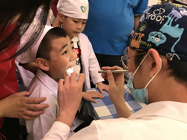 學(xué)習(xí)完理論知識,當然少不了上手實操的部分。醫(yī)護人員們首先為小牙醫(yī)們檢查牙齒的健康,將每個小朋友的口腔情況都一一告知父母。小牙醫(yī)們邊接受檢查,并聽醫(yī)生姐姐講解每一項檢查的目的,提醒他們齲齒可能給他們帶來的危害。