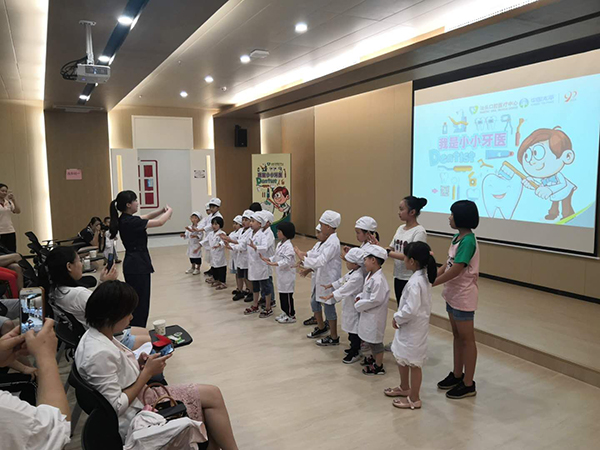 早早的孩子們便在家長(zhǎng)的陪同下來(lái)到口腔中心,在醫(yī)護(hù)人員的引導(dǎo)下?lián)Q上小小牙醫(yī)的制服,一個(gè)個(gè)活潑又認(rèn)真的小牙醫(yī)們“上崗”啦!