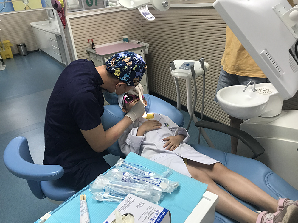 在醫(yī)護(hù)小姐姐的帶領(lǐng)下,小牙醫(yī)們換上正式的工作服,認(rèn)真地學(xué)習(xí)愛牙護(hù)牙的理論知識(shí),然后來到兒童牙科醫(yī)生們的工作崗位上,仔細(xì)地觀察醫(yī)生們都是如何為小朋友們檢查口腔健康情況、治療牙齒疾病的。隨后,小牙醫(yī)們也親身體驗(yàn)了一番。