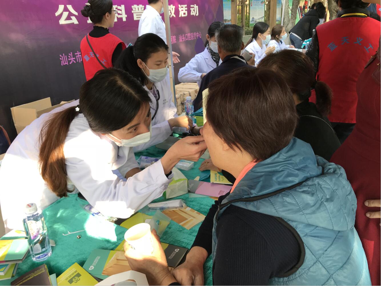 為切實(shí)履行為社會(huì)提供衛(wèi)生公共服務(wù)及榜樣示范的責(zé)任,樹立汕頭市民口腔保健意識(shí),提高汕頭市民的口腔健康水平。自10月28日起,口腔醫(yī)療中心已開展社區(qū)口腔科普宣教活動(dòng)20多期,為愈千人次檢查口腔及進(jìn)行口腔健康知識(shí)科普和答疑,發(fā)放科普資料2000多份。