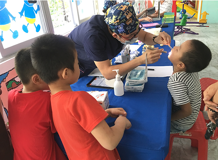 活動的主題為“愛護牙齒,從小做起”。此次義診旨在幫助兒童從小樹立愛牙、護牙意識,預(yù)防及檢查口腔健康情況,使孩子們擁有一口健康漂亮的牙齒。義診活動邀請了我院兒童齒科專家一同參與。義診內(nèi)容包括口腔檢查、口腔科普講座、趣味互動,通過檢查對兒童齲病做到“早發(fā)現(xiàn)、早診斷、早治療”,降低孩子因牙病造成的牙列不齊、齲齒等。除了口腔檢查,我院的醫(yī)護人員還走進教室,在幼兒園老師的幫助與支持下進行了趣味牙齒保健講座,讓孩子們從小就培養(yǎng)愛牙護牙的意識。