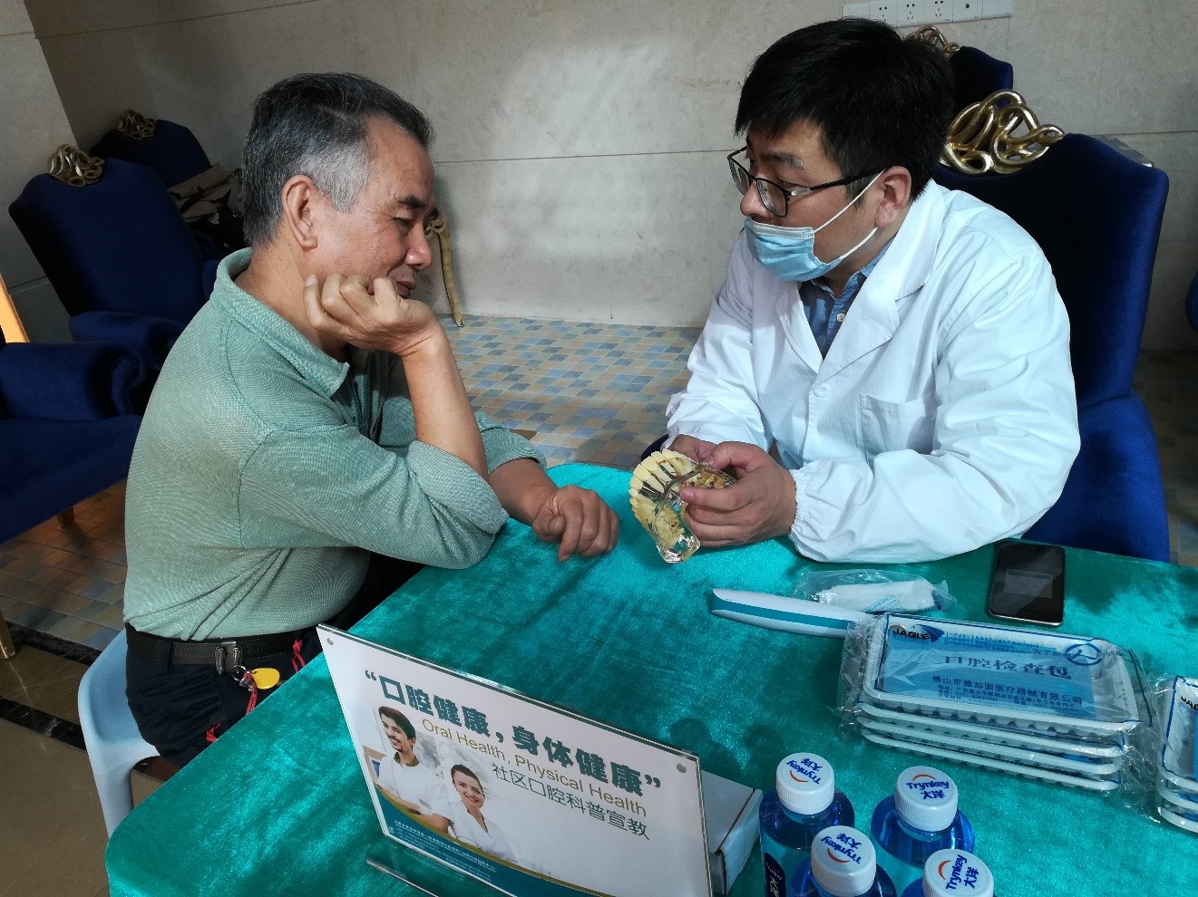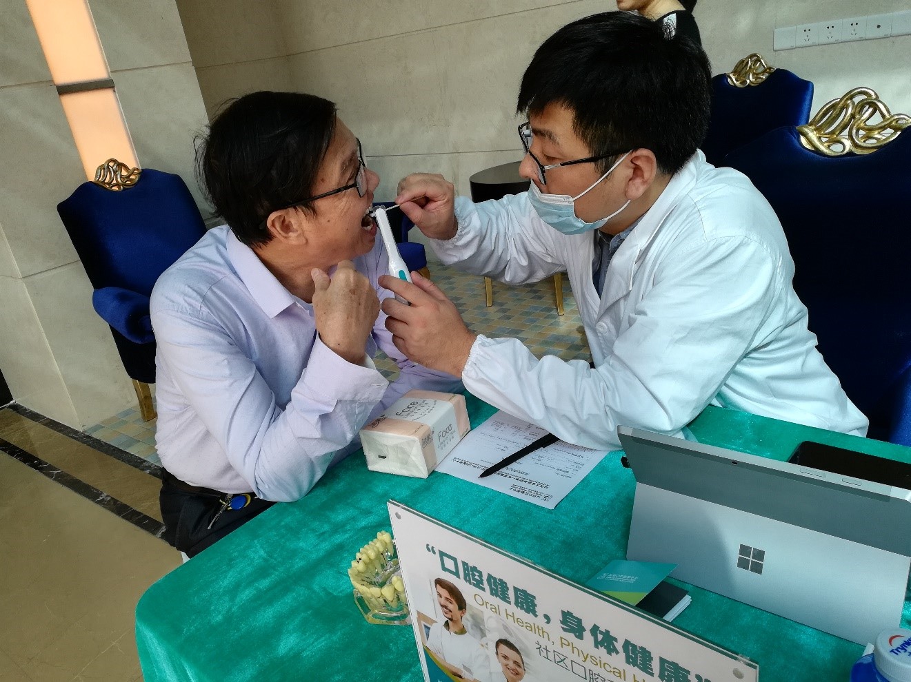 汕頭口腔醫(yī)療中心醫(yī)護(hù)人員首先為居民分享了如何正確刷牙、如何選擇合適的牙刷與牙膏、牙線的使用方式等口腔健康常識(shí),并在隨后的口腔檢查中,為小區(qū)居民解答日常生活中的疑惑。